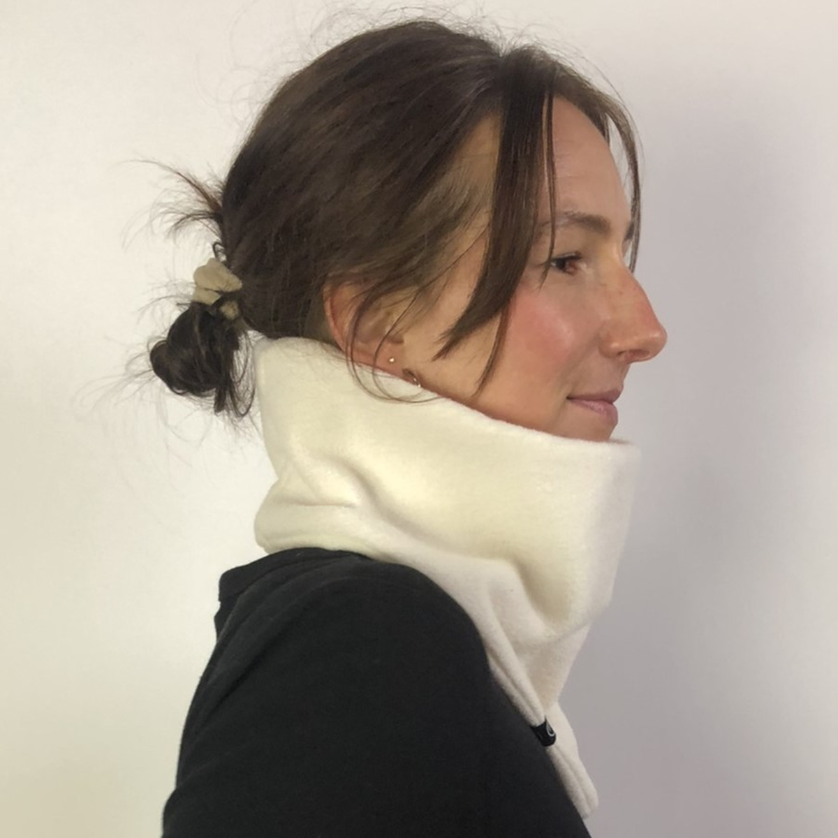 You'll need the loop scarf when you don't want to fully close your babywearing jacket – for instance, when your baby is very small and still unable to support their head independently or if you don't have a babywearing jacket and are using a babywearing cover.