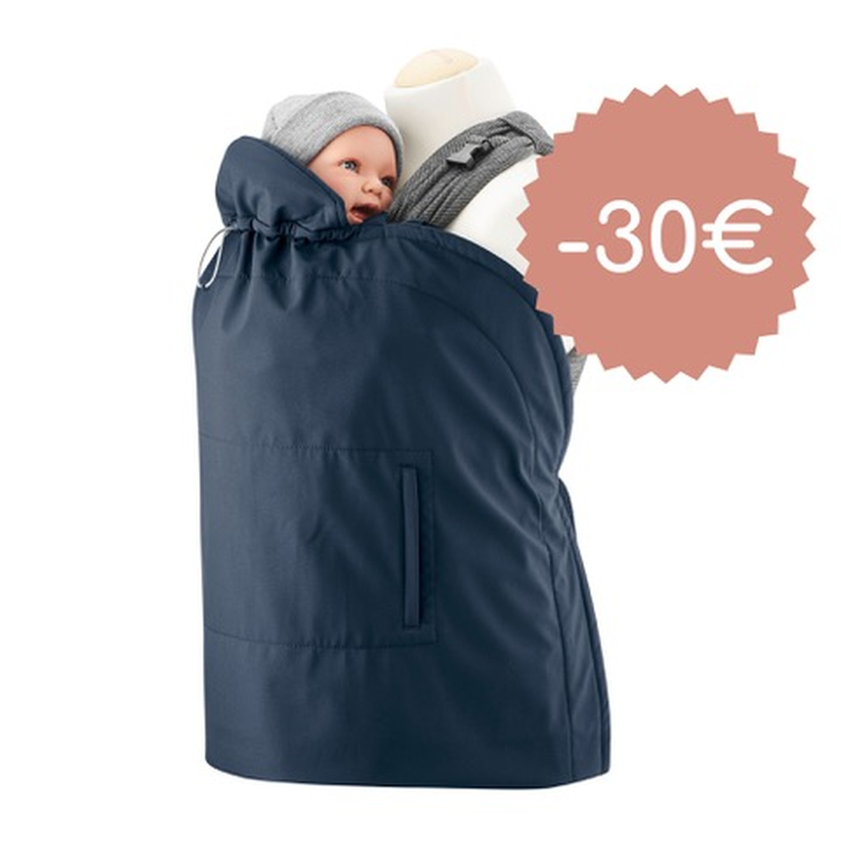 - Eingearbeitete, verschließbare Tasche, die auch als Muff die Hände der Trageeltern wärmen kann