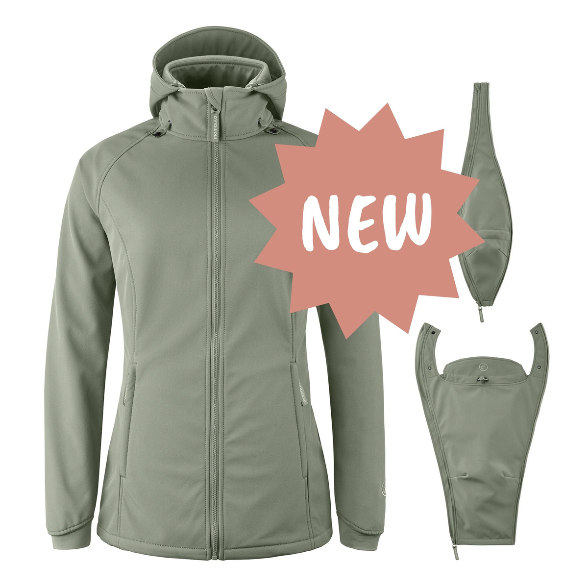 Schwanger? Oder wieder schwanger? Die mamalila Softshelljacke passt sich mühelos einem wachsenden Babybauch an. Sie enthält zwei Erweiterungen, die sich im Handumdrehen in die Jacke einzippern lassen: einen Schwangerschaftseinsatz für werdende Mütter (verstellbar in der Weite für deinen wachsenden Bauch) und einen Babyeinsatz für das Tragen vorne oder auf dem Rücken. Und wenn du einmal ohne Baby unterwegs bist, trägst du sie einfach als normale Jacke – ganz ohne Einsatz.