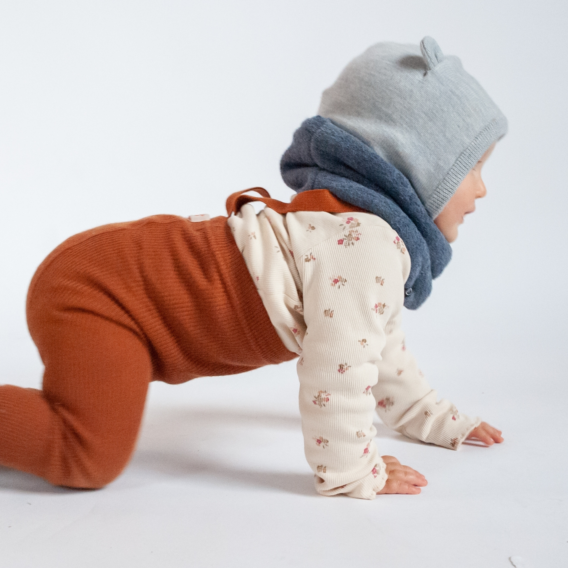 Durch den schönen Twist und ohne störende Nähte passt sich der Loopschal für Kinder ab 1 Jahr gut an Hals und Nacken an. Er hat einen besonders hohen Nacken, und gleichzeitig vorne einen tieferen Ausschnitt, damit der Loop nicht über das Gesicht rutscht. Geeignet für Kinder von 1-3 Jahren.