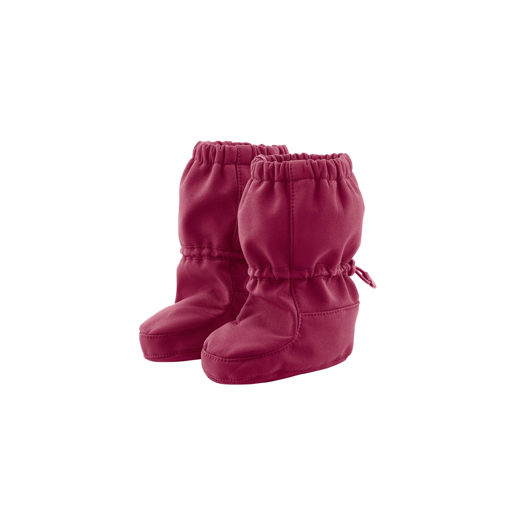 Gefertigt aus wasserabweisendem und atmungsaktivem Softshell mit weichem Fleecefutter, sorgen die Booties für warme und trockene Babyfüße. Dank dem extra langen Schaft und Gummizug bleiben sie in der Trage und beim spielen da, wo sie sein sollen.