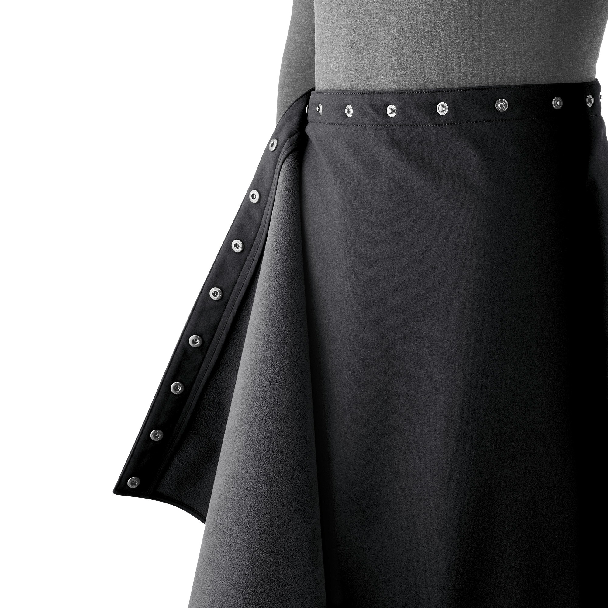 The skirt gives a bit protection from wind, cold and rain, so in addition to warm my butt and thighs - I also used it as a cover while carrying my child.