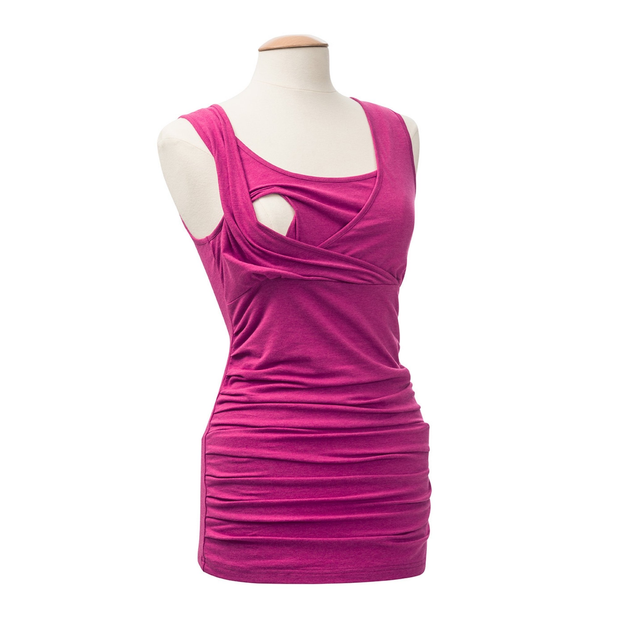 Auch das Material ist ganz auf die sensible Zeit der Schwangerschaft und des Stillens abgestimmt: aus Bio-Baumwolle und Tencel nachhaltig hergestellt, weich und fließend. In zwei sommerlichen Farben - wählen Sie zwischen leuchtendem himbeere und mint.