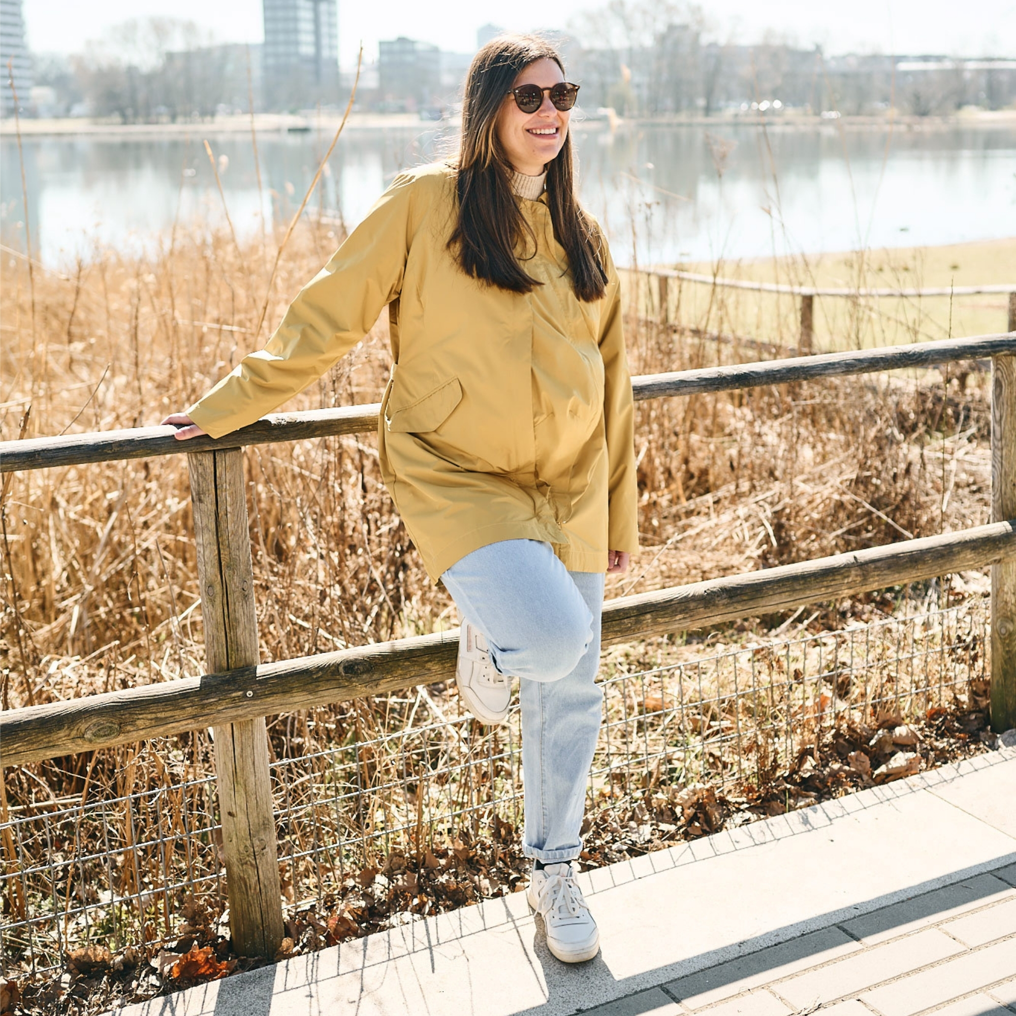 Gerade in der wechselhaften übergangszeit, bis in den Sommer ein genialer Mantel. Was ich besonders in der Schwangerschaft geliebt habe, ist die Verstellmöglichkeit in der Taille - dann sieht man nicht ganz so rund aus ;)